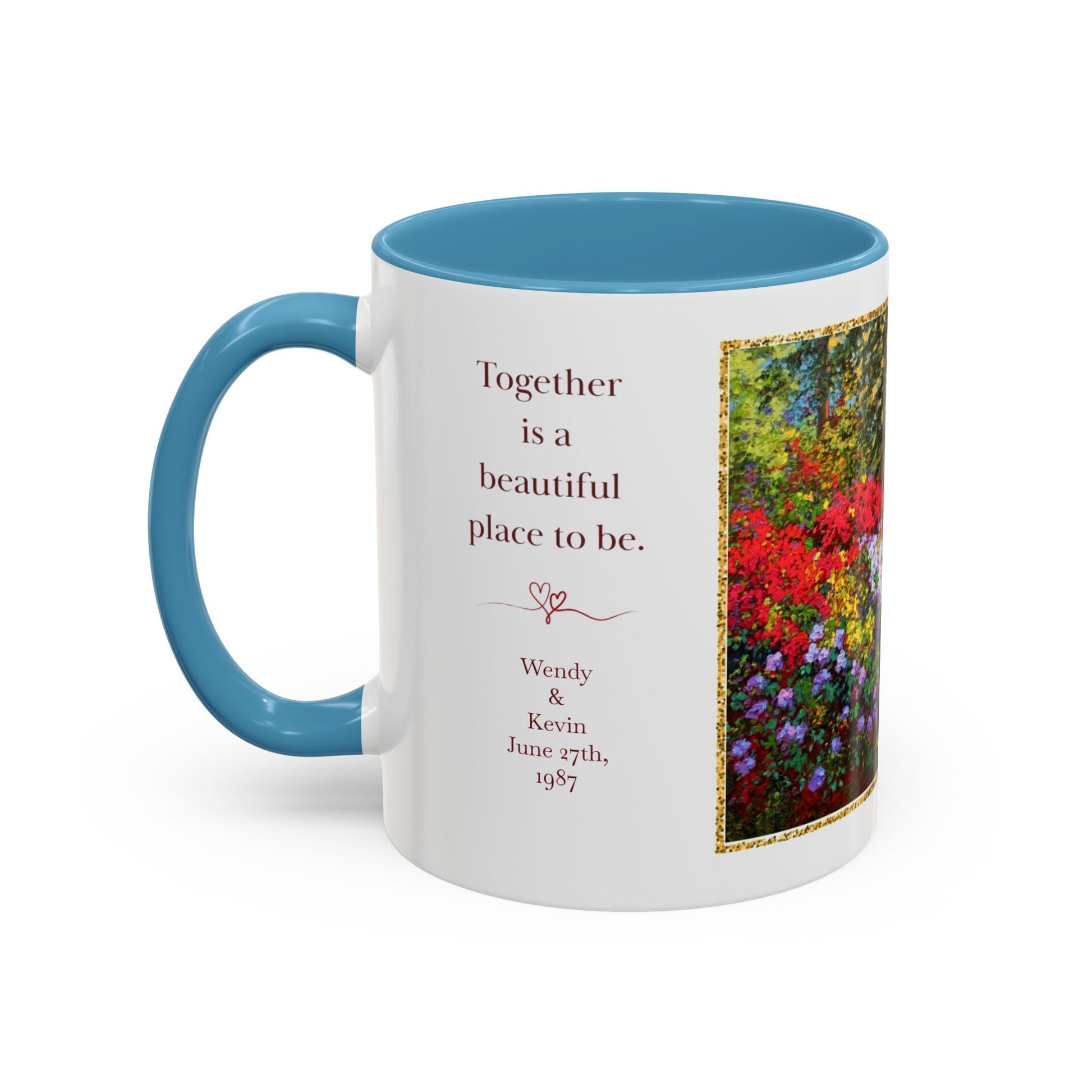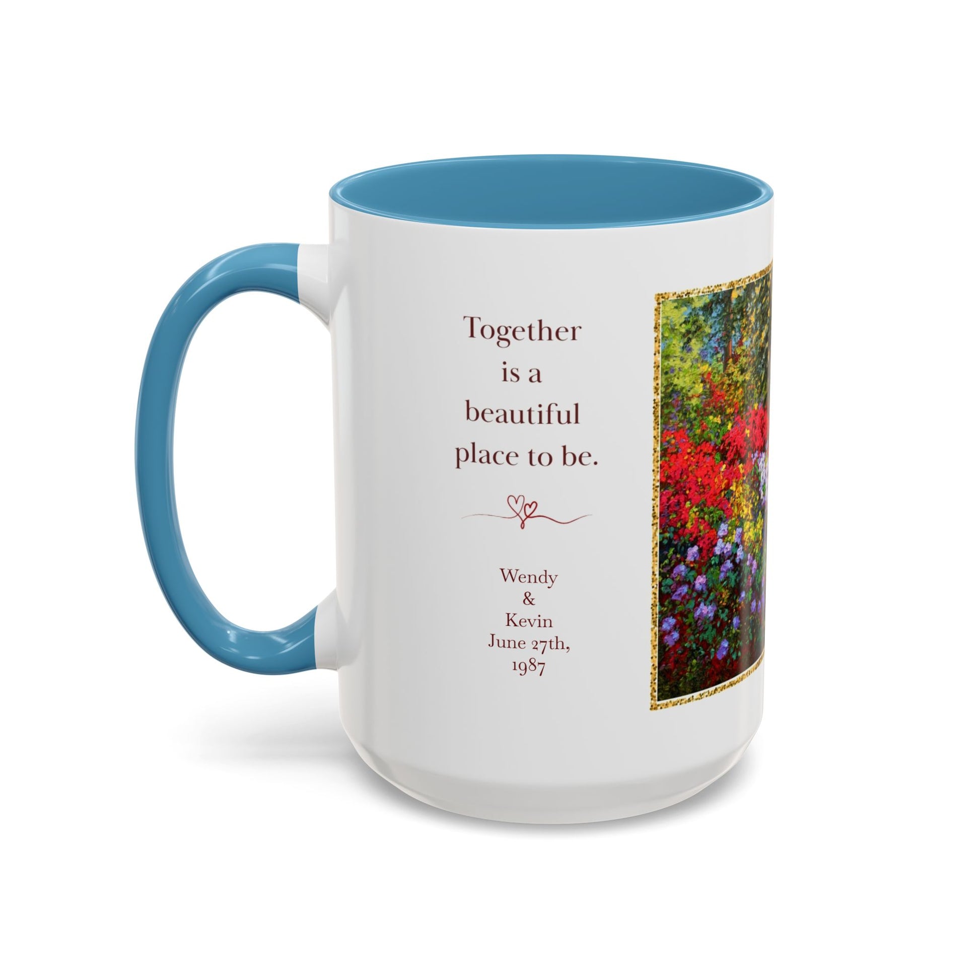 We can personalize this mug with your custom text! Please email us at schmiles@kevinwendyschaefermilesfineart.com with your order number and the text you'd like added. We'll work with our Printify partner to create your personalized mug.